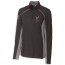 Essential everyday 100% Polyester pique quarter-zip made with micro-mesh pattern. Features gray colorblock side panels, contrast over-stitching, and logo on chest.